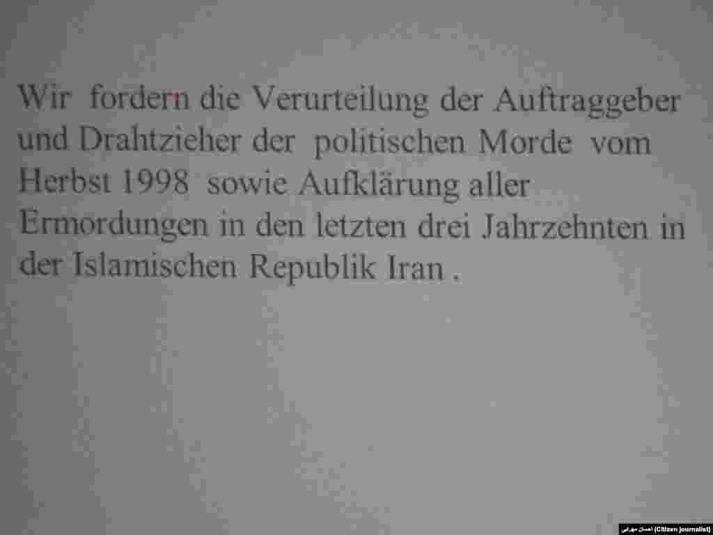 برلین، پایتخت آلمان، روز جمعه ۱۳ دسامبر، ۲۲ آذر مله، میزبان نشست یادبود پانزدهمین سالگرد قتلهای زنجیرهای در ایران بود. در این مراسم پرویز کردوانی، دبیر وقت کانون نویسندگان ایران، و کریستف درایر به نمایندگی از سازمان گزارشگران بدون مرز، سخنرانی کردند، اما دیگر سخنران این مراسم پرستو فروهر، به دلیل حضور در ایران نتوانست به ایراد سخن بپردازد.