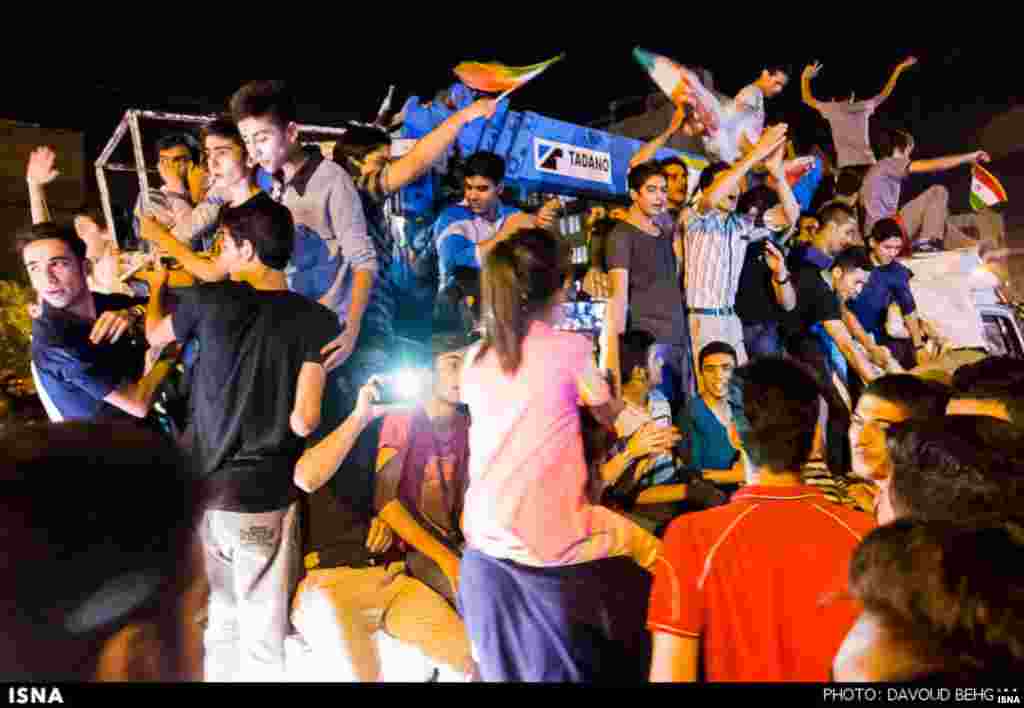 ساعاتی پس از انتشار خبر توافق هستهای، مردم در تهران و دیگر شهرهای ایران به خیابانها آمدند و به جشن و پایکوبی پرداختند.