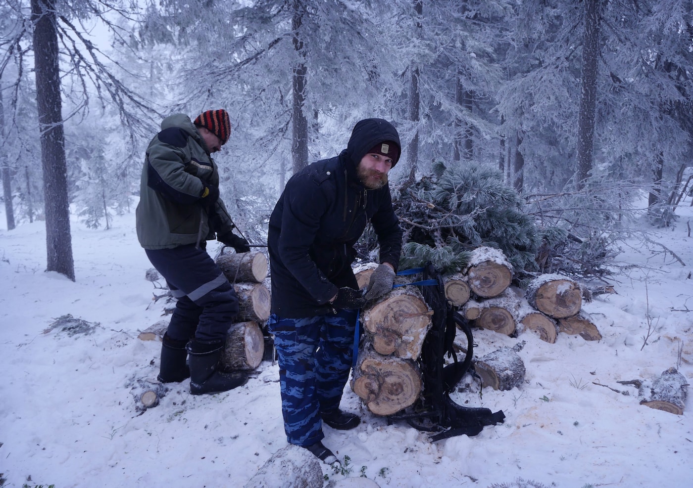 بولسلاو واویلف در حال جمع آوری چوب برای صومعه. این مرد ۲۷ ساله چندین بار به مدتهای طولانی در صومعه اقامت کرده و هر گاه بتواند از شغل خود که ماساژ درمانی است مرخصی گرفته و به صومعه می آید.
