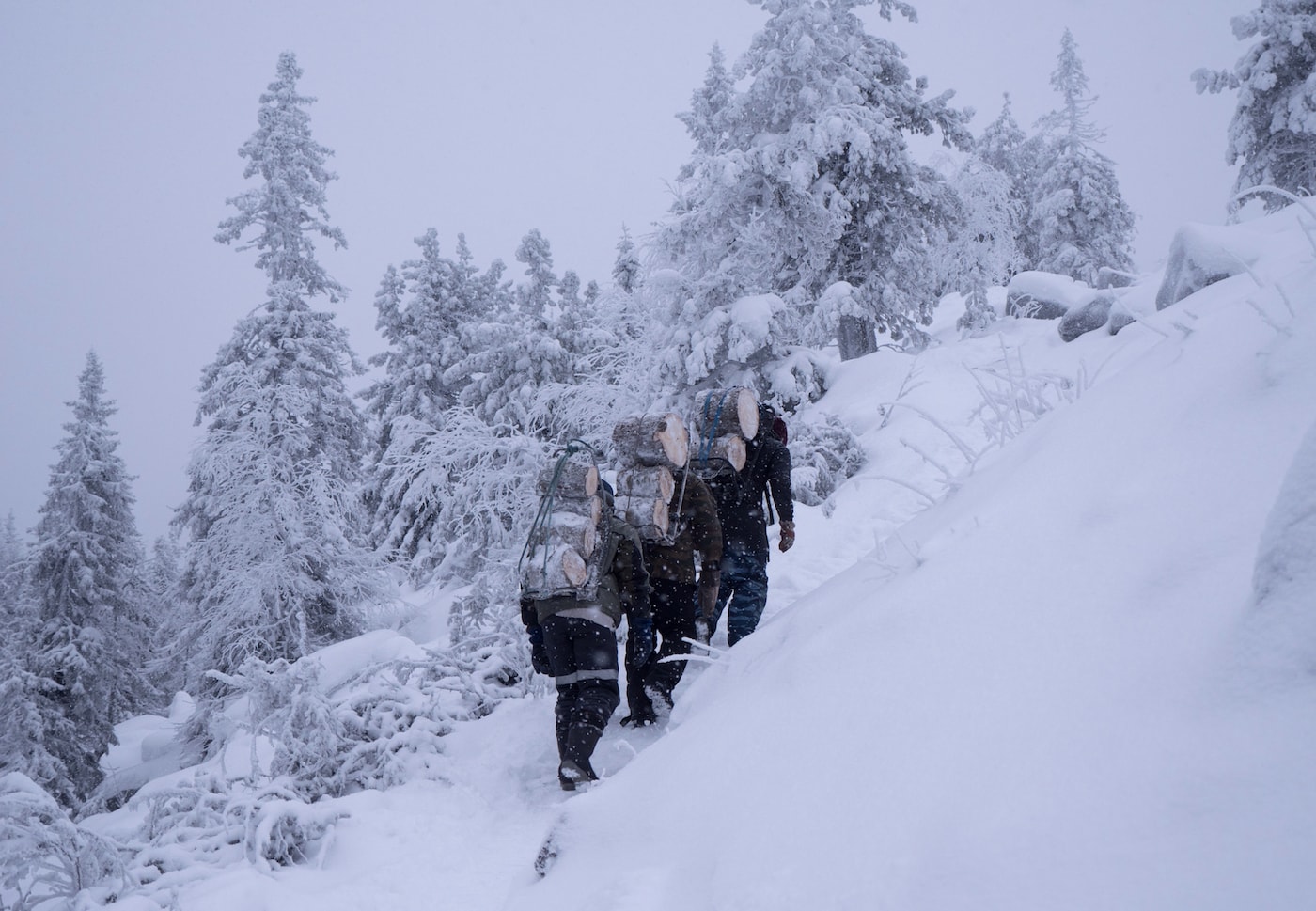 کوره راهی ۷ کیلومتری در دل جنگل به صومعه در ارتفاعات کوه کاچکانار منتهی می شود که ارتفاع آن ۸۸۸ متر بالاتر از سطح دریاست. این گروه، سوار بر سورتمه برای انتقال مواد غذایی از صومعه به سمت پایین در حرکت است.