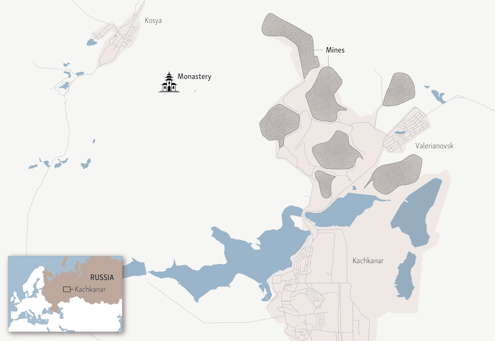 تولید تیرآهن در یکی از مراکز ذوب آهن شرکت «اوراز». این شرکت در پاسخ به سئوال رادیو اروپای آزاد/ رادیو آزادی در مورد تاریخ تعیین شده برای تخلیه صومعه در بیانیه ای به صورت ای میل نوشت:«ساختمان هایی که در قله کاچکانار قرار دارند درست روی منبع سنگ آهن سوبستونو کاچکانارسکو بنا شده اند. طبق قوانین فدرال روسیه بنای هر ساختمانی و بخصوص ساختمانهای مسکونی روی سطح منابع معدنی به دلایل ایمنی ممنوع است. این مسئله در حوزه اختیارات نهادهای دولتی است.»