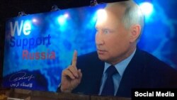 نیروهای حشد الشعبی عراق، گروه شبه نظامی شیعه وابسته به جمهوری اسلامی ایران، بیلبوردهایی با عکس ولادیمیر پوتین در حمایت از رئیسجمهوری روسیه در نقاط مختلف بغداد نصب کردهاند.
