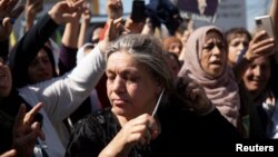 زنی در این راهپیمایی موهای خود را به اعتراض قیچی میکند