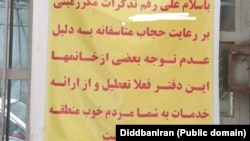 سایت دیدهبان ایران با انتشار عکسی، از پلمب یک دفتر پلیس+۱۰ در محله چیذر تهران به دلیل رعایت نکردن حجاب اجباری خبر داد.