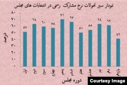 شروع این روند از انتخابات مجلس یازدهم بود که کمترین نرخ مشارکت در ادوار انتخابات مجلس را رقم زد. نمودار زیر روند تحولات در نرخ مشارکت انتخابات ادوار مجلس شورای اسلامی را نشان میدهد. این نمودار براساس آمارهای رسمی ترسیم شده و ارقام واقعی، بهخصوص در دورۀ یازدهم، کمتر هستند.