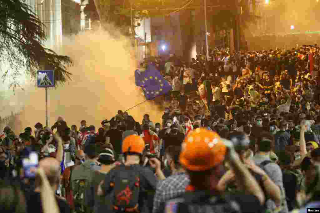 چهارشنبهشب ۱۲ اردیبهشت بزرگترین تظاهرات علیه لایحهٔ «عوامل خارجی» که در پارلمان گرجستان تصویب شده، برگزار شد و با دخالت پلیس به خشونت گرایید. معترضان این طرح را «قانون روسیه» خوانده و میگویند در روسیه از چنین طرحی برای برخورد با مخالفان پوتین استفاده میشود. کانون اصلی تظاهرات مقابل ساختمان پارلمان گرجستان بوده و دولت مدعی شده معترضان میخواستهاند وارد آن شوند. روسیه در میان بسیاری از شهروندان گرجستان بهدلیل جنگ کوتاهمدت بین دو کشور در سال ۲۰۰۸ بسیار نامحبوب است.