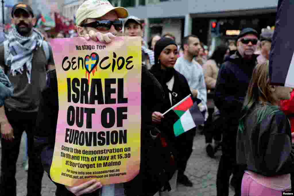 پنجشنبه ۲۰ اردیبهشت همزمان با برگزاری «یوروویژن» در مالمو در سوئد، تظاهراتی علیه عملیات اسرائیل در غزه برگزار شد. اسرائیل از شرکتکنندگان در این مسابقهٔ آواز است و معترضان هم به حضور اسرائیل در مسابقه اعتراض دارند و هم خواستار توقف جنگ در غزه و «نسلکشی فلسطینان» هستند. شعار یوروویژن «متحد بهواسطهٔ موسیقی» است اما شکافهای ملی و اختلافات سیاسی همواره بر این مسابقات سایه افکنده است.