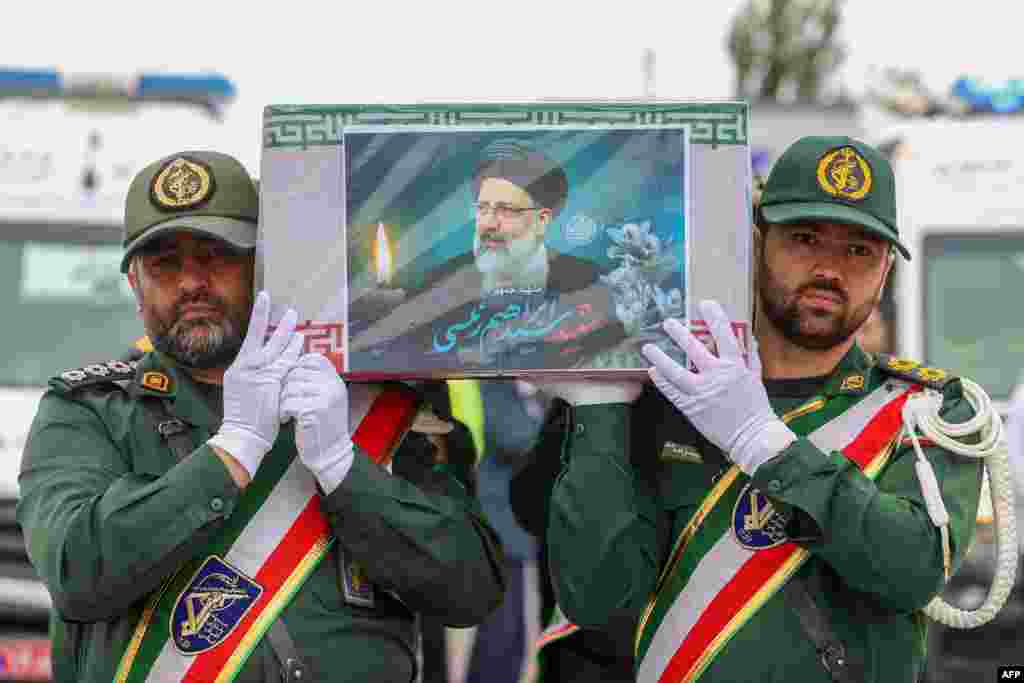 عکسهایی از تشییع جنازهٔ ابراهیم رئیسی و همراهانش در تبریز