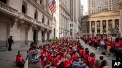 گروهی از حامیان فلسطینیان روز دوشنبه در نزدیکی بورس نیویورک دست به تحصن زدند و خواستار توقف حمایت آمریکا از اسرائیل در جنگ غزه شدند.