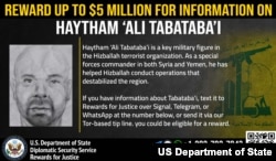 علاوه بر آن، وزارت خارجۀ آمریکا در سال ۲۰۲۱ پاداشی پنج میلیون دلاری برای اطلاعات منجر به دستگیری یا به شکست کشاندن طرحهای هیثم علی طباطبایی اعلام کرد. وزارت خارجۀ آمریکا در بیانیۀ خود به نقش طباطبایی در سوریه و یمن که «با هدف بر هم زدن ثبات منطقه صورت میگیرد» نیز اشاره کرد.