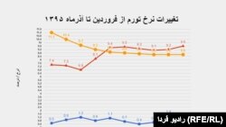 بررسی تغییرات قیمت سبد کالای منتخب رادیو فردا که شامل ۱۰ قلم کالای پرمصرف در سبد خانوارهای ایرانی است نیز نشان می دهد که متوسط قیمت این اقلام در دی ماه امسال در مقایسه با ماه پیشین آذرماه، ۲٫۵ درصد کاهش داشته است.