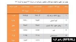 در جدول شماره یک جزییات تغییر قیمت سبد کالای منتخب رادیو فردا در دو مقطع دی ماه امسال و پارسال مقایسه شدهاند.