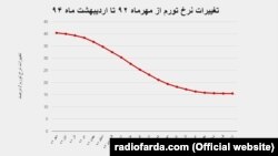 بر مبنای گزارشهای بانکمرکزی، نرخ تورم از مهر ماه سال ۹۲، حرکت کاهشی خود را از ۴۰.۴ درصد آغاز کرد تا با کاهش حدود ۲۵ واحد درصدی به ۱۵.۵ درصد در فروردین امسال رسید، اما این روند کاهشی در اردیبهشت ماه تکرار نشد و نرخ تورم روی این عدد ثابت ماند.