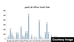 نمودار زیر تعداد کشتهشدگان را به تفکیک کشورها نشان میدهد: