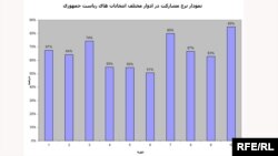 نمودار زیر میزان نرخ‌های مشارکت رسمی در ده دوره قبل را نشان می‌دهد. نرخ‌های مشارکت واقعی به احتمال زیاد کمتر از این ارقام هستند: