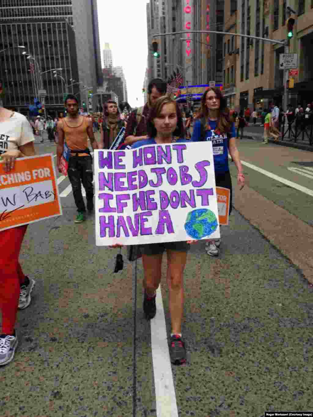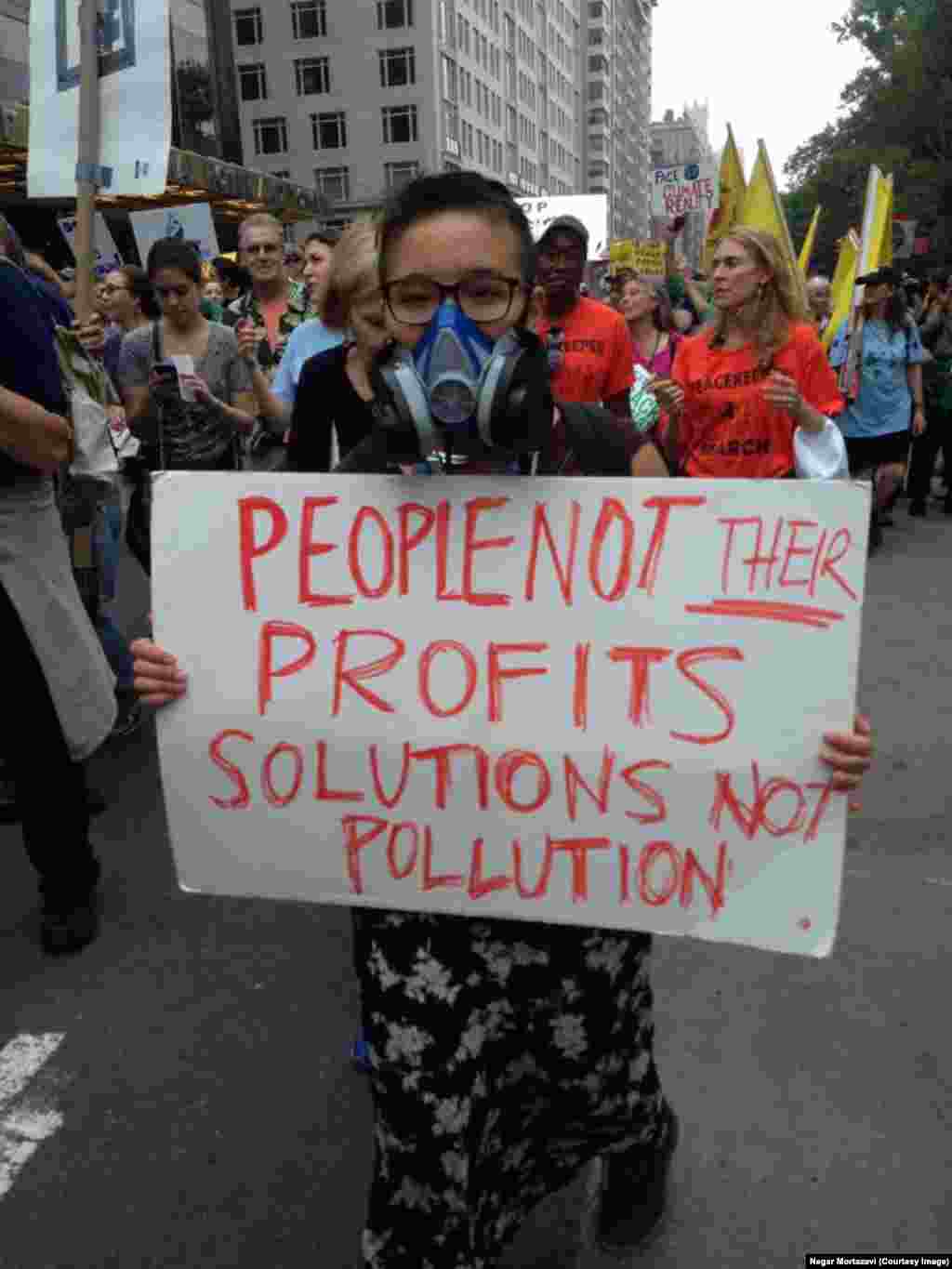 راهپيمايى «تاریخی» در اعتراض به تغييرات آب و هوا روز يكشنبه،سی شهریور ماه، در نيويورک و بيش از ١٦٠ كشور دنيا انجام شد. سران كشورهاى دنيا براى شركت در مجمع سالانه سازمان ملل وارد نيويورک شده اند. به همين دليل فعالان محيط زيست از مردم خواسته بودند در اعتراض به سياست هاى دولت ها در جهت تخريب محيط زيست و گرمايش كره زمين راهپيمايى كنند. اين راهپيمايى در چند خيابان اصلى منهتن در نزديكى سازمان ملل برگزار شد. بيش از سيصد هزار نفر از جمله فعالان محیط زیست ایرانی در اين راهپيمايى شركت كردند و سران كشورهاى مختلف را خطاب قرار دادند.