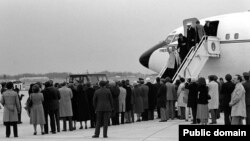 گروگان‌ها با هواپیمایی الجزایری به پایگاهی نظامی در آلمان برده شدند. جیمی کارتر، که دوران ریاست‌جمهوری او به پایان رسیده بود، به آلمان غربی رفت تا به گروگان‌ها خوش‌آمد بگوید.