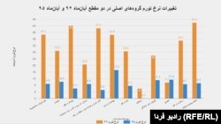 تغییر مبنای مقایسه تغییرات قیمتی اقلام این سبد کالایی از مهرماه ۹۵ به آبان ماه ۹۴، تورم نقطهبهنقطه این اقلام را بیان میکند.