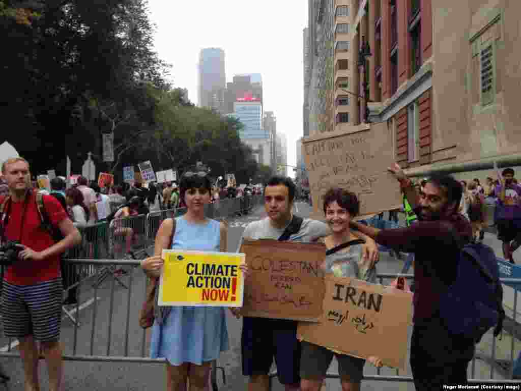 راهپيمايى «تاریخی» در اعتراض به تغييرات آب و هوا روز يكشنبه،سی شهریور ماه، در نيويورک و بيش از ١٦٠ كشور دنيا انجام شد. سران كشورهاى دنيا براى شركت در مجمع سالانه سازمان ملل وارد نيويورک شده اند. به همين دليل فعالان محيط زيست از مردم خواسته بودند در اعتراض به سياست هاى دولت ها در جهت تخريب محيط زيست و گرمايش كره زمين راهپيمايى كنند. بيش از سيصد هزار نفر از جمله فعالان محیط زیست ایرانی در اين راهپيمايى شركت كردند و سران كشورهاى مختلف را خطاب قرار دادند.