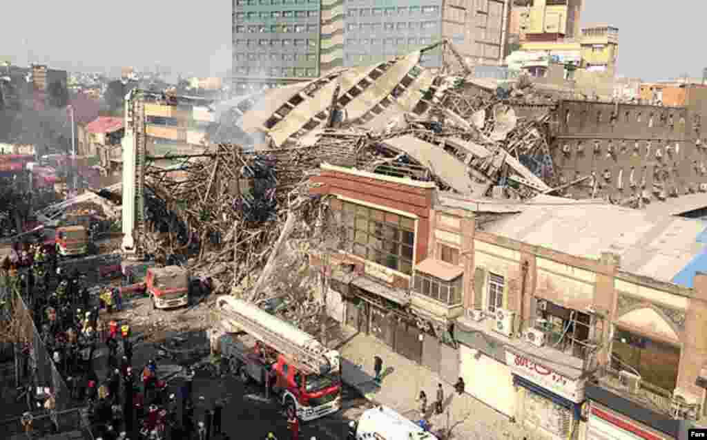 در پی آتشسوزی گسترده در مجتمع تجاری پلاسکو در خیابان جمهوری تهران در روز پنجشنبه، ۳۰ دیماه، این بنای فرسوده ساعاتی پیش فروریخت. بعد از وقوع انفجار و ریزش ساختمان بیش از ۴۰ آتش نشان در داخل ساختمان در حال امداد رسانی بودند. شهردار تهران، خبر داده که در این حادثه دستکم ۲۰ آتشنشان جان باختهاند.