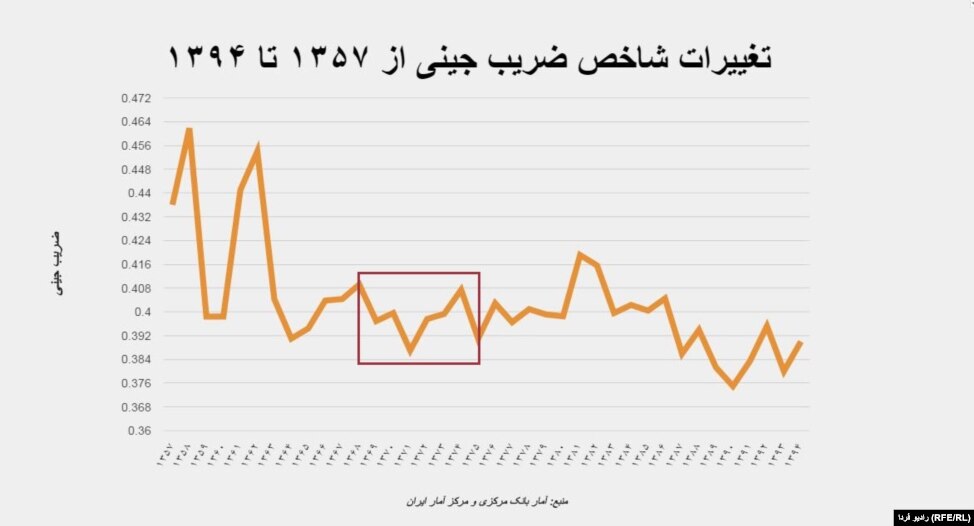 در هشت سال دولتداری اکبر هاشمی رفسنجانی، متوسط شاخص ضریب جینی رقم ۰٫۳۹۸۵ بود.