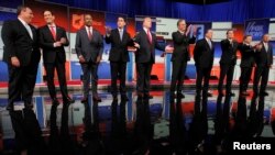 در برنامهی سوم يا مناظريهی اصلی با حضور تماشاگر ۱۰ نامزدی که نظر سنجیها آنان را در وضعيت بهتری نشان می دادند با يکديگر مناظره کردند: ميلياردر دانلد ترامپ، فرماندار اوهايو جان کيسيک، فرماندار نيوجرزی کريس کريستی، فرماندار سابق فلوريدا جب بوش، سناتور مارکو روبيو، سناتور تد کروز، فرماندار ويسکانسين اسکات واکر، فرماندار سابق مايک هاکبی، جراح مغز بن کارسون و سناتور رند پاول. ترامپ با توهينها و حملات شخصیاش به ديگر نامزدها قبل از اين مناظره در مرکز توجه قرار داشت.