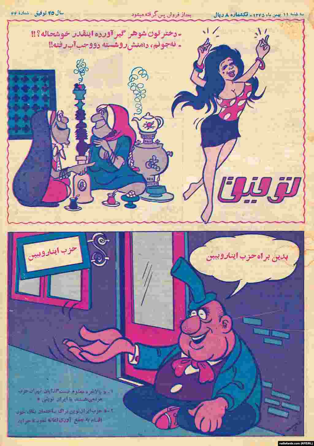 حسین توفیق، یکی از سردبیران نشریه طنز توفیق، روز پنجشنبه، ۱۰ فروردین در سن ۸۸ سالگی درگذشت. نگاهی به چند شماره توفیق:
