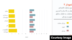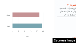 همچنین بر اساس آنچه در نمودار بعدی مشخص است، در ۵ استانی که پایینترین نرخ مشارکت اقتصادی را در بین زنان دارند، نرخ مشارکت زنان در روستاها نیز پایینتر از مناطق شهری آن استانهاست.