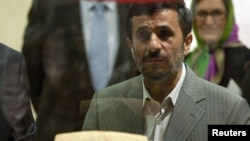 منشور کوروش در دست محمود احمدی‌نژاد