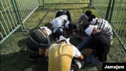 این گفتهها در حالیست که در یکی از عکسهای منتشر شده در رسانهها عنوان «دستگیری اتباع بیگانه» در محل نردهکشی شده شبیه به قفس، نصب شده است.