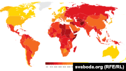 شفافيت بين الملل در گزارش سالانهاش وضعيت ۱۷۷ کشور جهان از نظر فساد را بررسی کرده که بر مبنای آن در بيش از دو سوم کشورهای جهان شاخص فساد بيش از عدد ۵۰ است و اين کشورها فاسد محسوب میشوند.