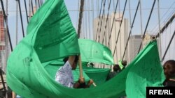 جوانان ايرانى هوادار جنبش سبز در شهر نيويورک، روز پنج شنبه، دست به يك كار تاريخى زدند. اعضاى گروه «صداها براى ايران»، كه هوادار جنبش سبز است، تومارى سبز رنگ را بر فراز «پل بروكلين» (Brooklyn Bridge)به نمايش گذاشتند.