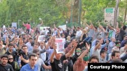 اين شاهد عينى گفت: اكثر تظاهر كنندگان، سبزپوش بوده و در حالى كه دستان خود را بالا گرفته اند به صورت مسالمت آميز راهپيمايى مى كنند.