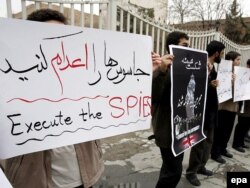 برخی از خبرگزاری های ايران روز پنج شنبه خبر دادند تعدادی معترض که « دانشجو» معرفی شده اند مقابل وزارت امورخارجه ايران تجمع کرده و خواستار محاکمه نيروهای بريتانيايی شدند.
