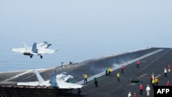 جان کربی، سخنگوی پنتاگون میگوید که جنگندههای اف- ۱۸ آمریکایی بمبهای ۵۰۰ پوندی خود را بر روی توپخانه این گروه انداختند.