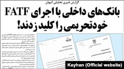 این در حالی است که کیهان پیوستن به FATF را «تیشه زدن به ریشه اقتصاد و امنیت ملی» ارزیابی میکند و رجا نیوز هم ارائه نکردن خدمات ارزی بانکهای ملت و سپه به قرارگاه خاتمالانبیا را «خود تحریمی» میخواند و مینویسد که «اینها نخستین تبعات پذیرش قرارداد FATF است».
