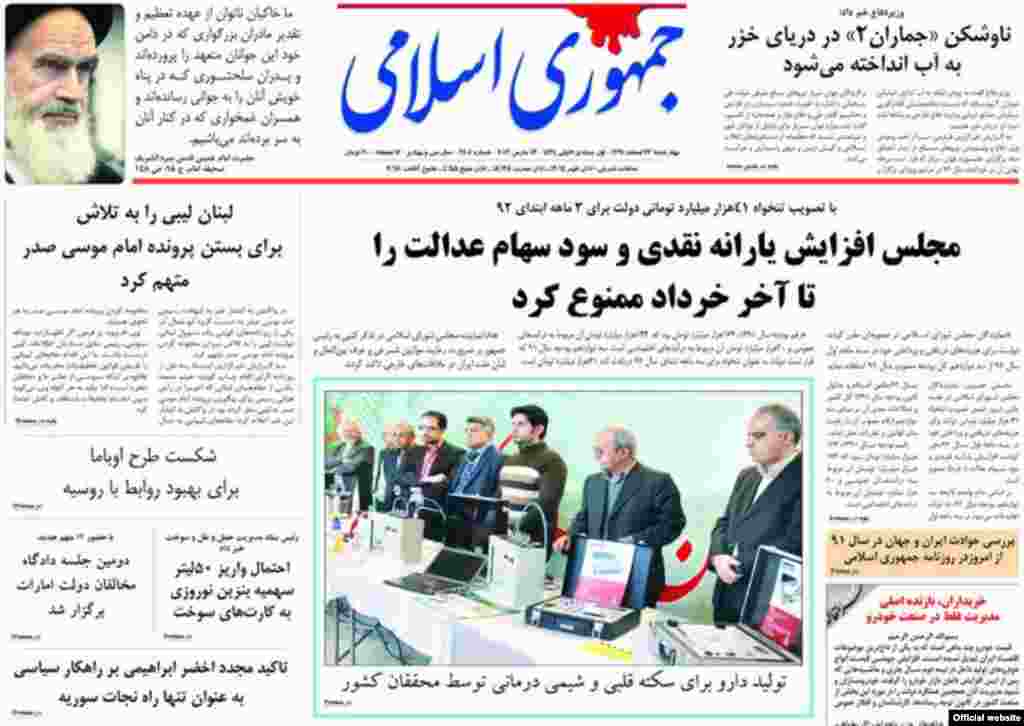 صفحه نخست روزنامههای صبح چهارشنبه ۲۳ اسفند ۹۱