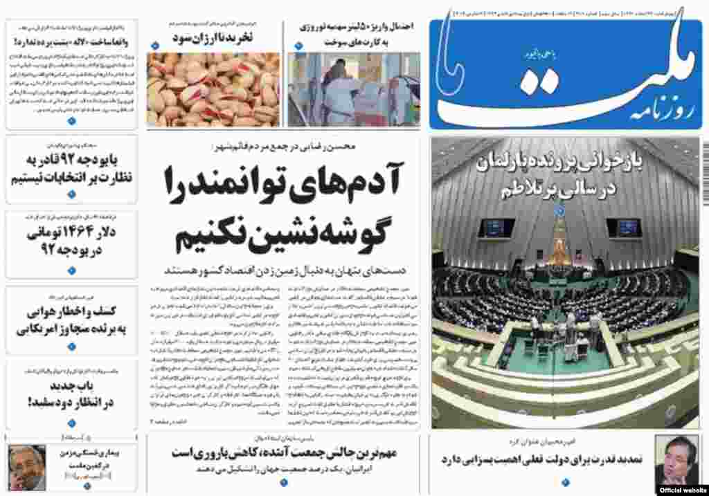 صفحه نخست روزنامههای صبح چهارشنبه ۲۳ اسفند ۹۱