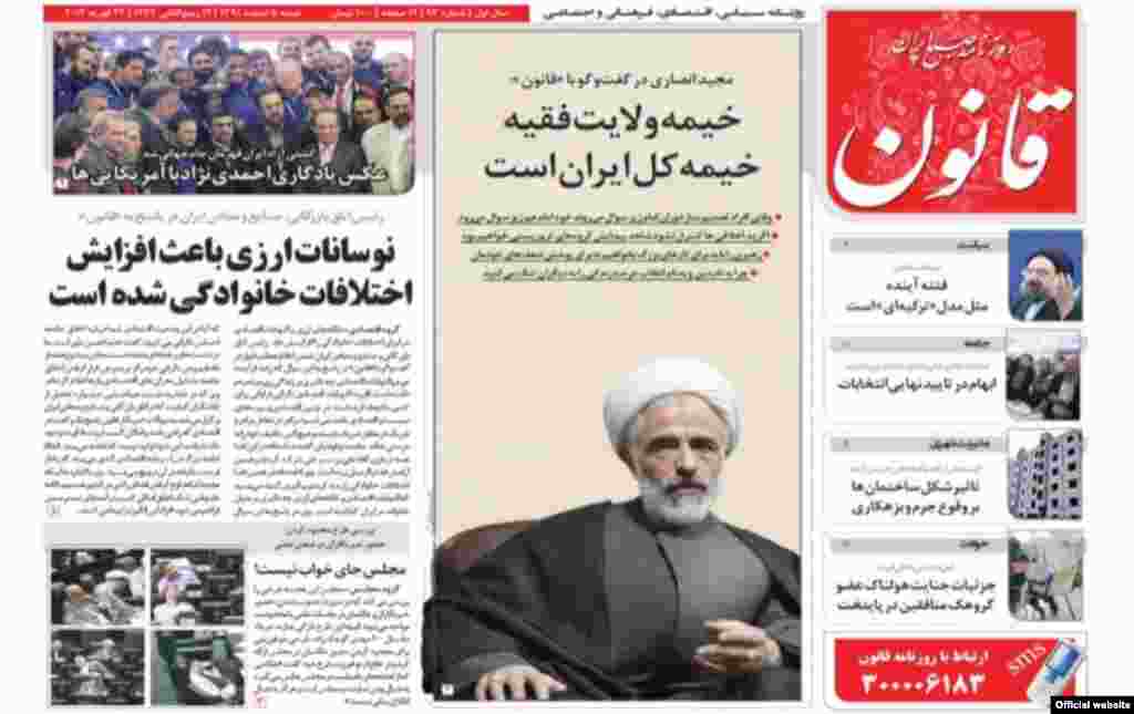 در میان روزنامههای روز شنبه، پنجم بهمن، روزنامه قانون در گفتوگویی با مجید انصاری از اعضای مجمع روحانیون مبارز، منتشر کرده و از قول او نوشته «این چه نظام مقدسی است که طی ۳۴ سال گذشته جز رهبر همه دچار انحطاط و فساد شدهاند».