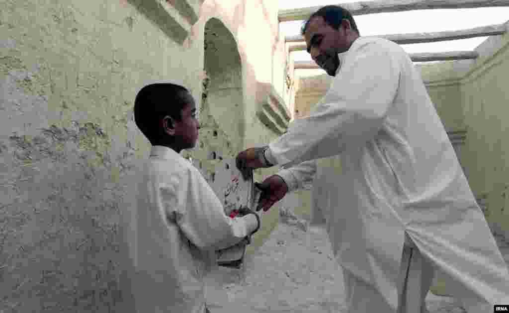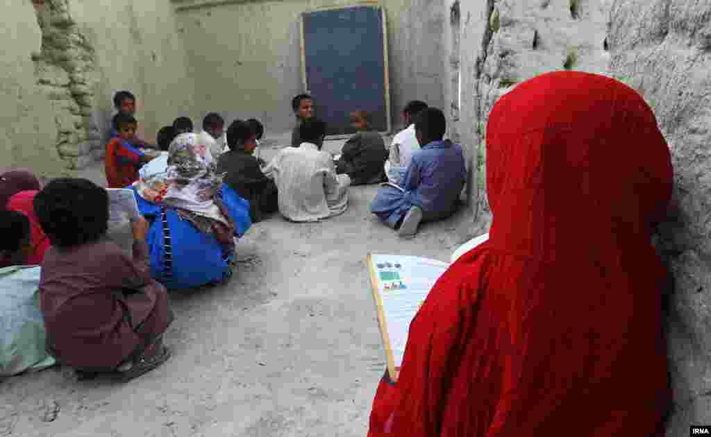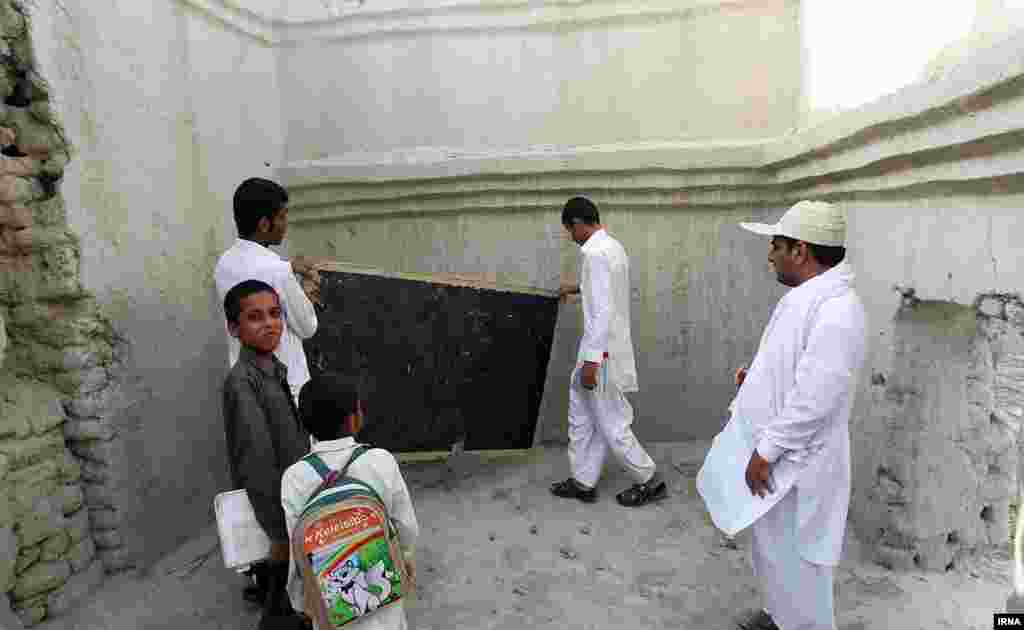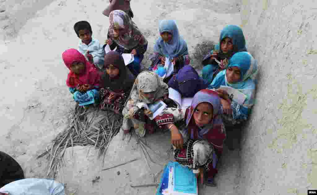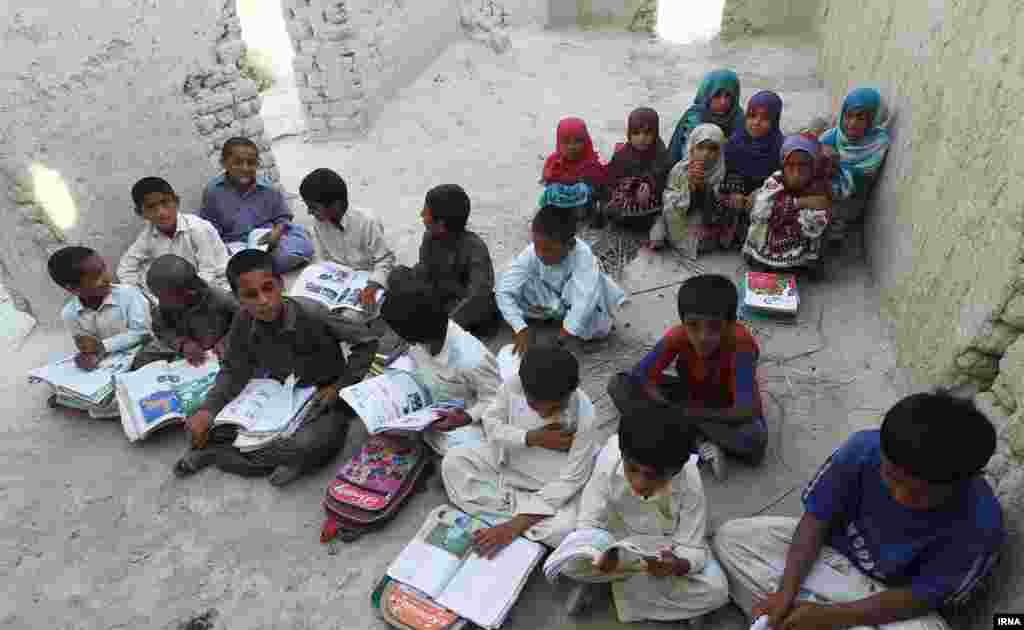 دانشآموزان روستای کوچو در استان سیستان و بلوچستان در ویرانهها درس میخوانند، چرا که تنها مدرسه این روستا توسط مسئولان به یک شرکت ساختمانی اجاره داده شده و به انبار این شرکت بدل شده است. [عکسها از اکبر توکلی/ ایرنا]