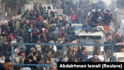 تلویزیون دولتی سوریه شمار اتوبوس‌های اعزامی را ۱۰۰ دستگاه عنوان کرده و خبرگزاری دولتی سوریه سانا گفته بود که این اتوبوس‌ها برای انتقال «تروریست‌ها و خانواده‌هاشان» اعزام شده‌اند. حکومت اسد، همه گروه‌های شورشی مخالف خود را «تروریست» می‌داند.