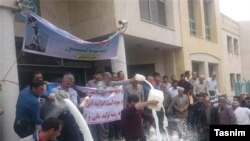 دامداران اصفهانی روز دوشنبه شیر خام خود را در مقابل ساختمان جهاد کشاورزی استان اصفهان در جوی آب خالی کردند.
