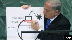 نمودار ساده «بمب ایرانی» که بنیامین نتانیاهو نخست وزیر اسرائیل در دقایق پایانی سخنرانی خود در روز پنجشنبه ششم مهر از تریبون سازمان ملل متحد در شصت و هفتمین مجمع عمومی این سازمان نشان داد، تنها لحظاتی پس از پایان این نطق، چنان فضای مجازی را در آمریکا و جهان غرب به خود مشغول کرد که رسانه‌های معتبر بین‌المللی نیز نتوانستند از این موج واکنش‌ها غافل بمانند.