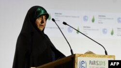 از قرار معلوم خانم ابتکار، رییس سازمان محیط زیست ایران، به نشست پاریس اعلام کرده که کشورش حاضر است به صورت مشروط انتشار گازهای گلخانهای خود را طی پانزده سال آینده چهار درصد کاهش بدهد، ولی در صورت رفع کامل تحریمها و همکاری بینالمللی، این کاهش دو برابر خواهد بود.