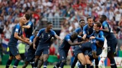 هوگو لوریس دروازهبان تاتنهام و کاپیتان تیم ملی فرانسه، جام جهانی را از اینفانتینو رییس فیفا دریافت کرد و بالای سر برد.