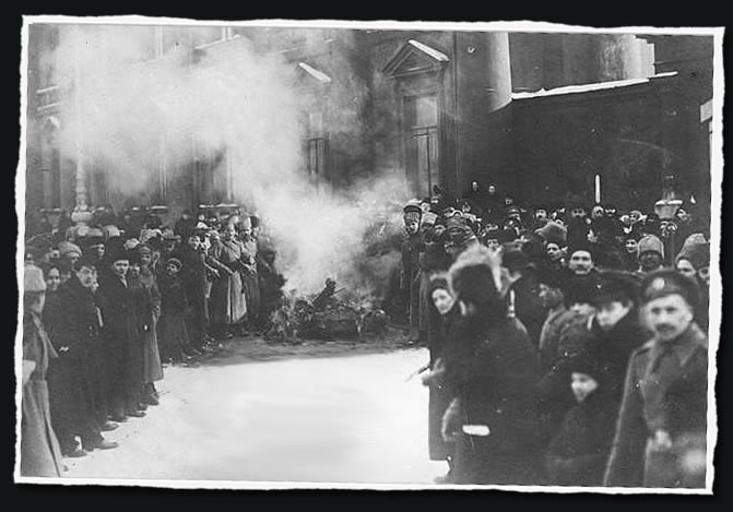 در فوریه ۱۹۱۷ هزاران قطار باربری که قرار بود آرد، چوب و ذغال سنگ به شهر سنت پترزبورگ منتقل کننند به خاطر شرایط بد هوا از کار افتادند. این حادثه عامل نهایی در به راه افتادن طوفان خشم و نارضایتی علیه تزار و خانواده او بود.