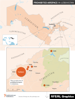 تنها مورد استثنایی در این محدوده ممنوعه پرواز مسیر مشخصی است که برای برخی از پروازهای فرودگاه بینالمللی تاشکند در نظر گرفته شده است. آقای میرضیایف این فرودگاه را در ماه مه ۲۰۱۷ به نام اسلام کریماف، رهبر سابق ازبکستان، نامگذاری کرد.