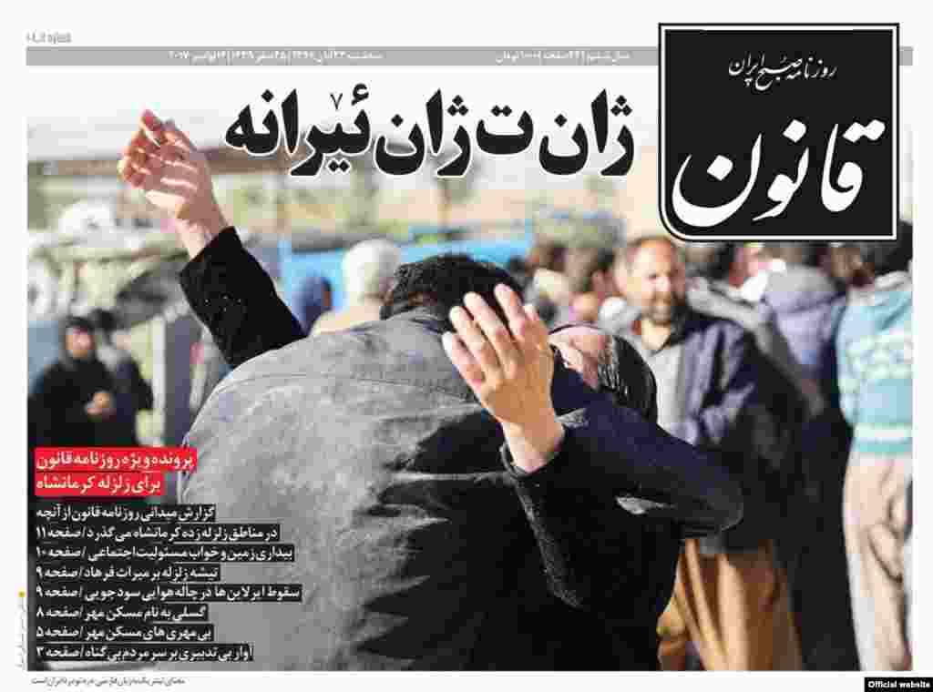 صفحه یک روزنامههای سه شنبه ایران با چاپ عکسهایی از آسیب دیدگان زلزله شامگاه یک شنبه استان کرمانشاه، تلاش کرده اند بازتاب همدلی و همدردی ملی با آنها باشند. بعضی از روزنامههای سراسری و استانی در اقدامی کم سابقه در تیترهای یک خود این همدردی را به زبان کُردی بیان کرده اند.