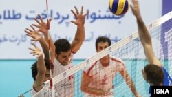 ايران در ابتدا با ترکيب سعيد معروف، محمد موسوی، فرهاد قائمی، آرمين تشکری، حمزه زرينی، امير غفور و فرهاد ظريف وارد ميدان شد. ملي پوشان در گيم اول با نتيجه ۲۵-۲۰ پيروز شدند. در گيم دوم رقابت پاياپايی برقرار بود و سرانجام ايران با نتيجه ۲۶-۲۴ اين ست را واگذار کرد.