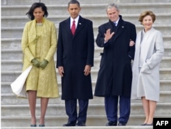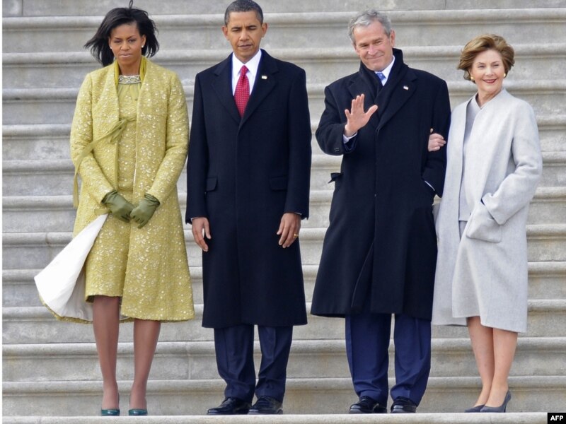 باراک اوباما و همسرش، جرج و لورا بوش را تا پای هلی کوپتر بدرقه کردند. رییس جمهور سابق آمریکا عازم محل زندگی تازه خود در تگزاس شد.باراک اوباما خطاب به «جهان اسلام» نيز گفت: «ما به دنبال راه جديدی به سوی آینده هستیم مبتنی بر منافع مشترک و احترام متقابل.»